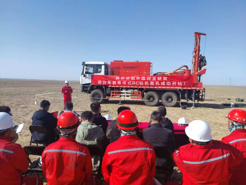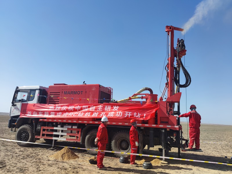该钻机型号为MARMOT 200RC,由四川远山勘探集团有限公司旗下四川旱獭科技有限公司自主研发制造,是我国首款通过国家公告和3C认证的车载集成式空气反循环钻机。