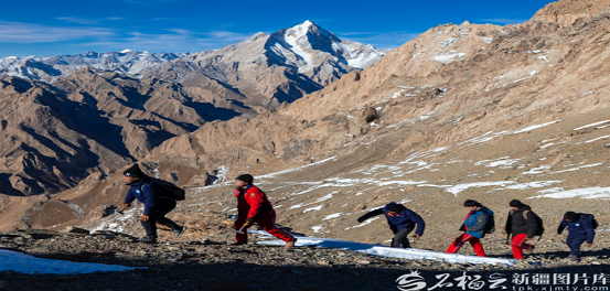 2025年11月24日,自治区地质局阿克苏地质大队工作人员坚守拜城黑英山一线,在严寒中展开霞石正长岩普查工作。马当福摄