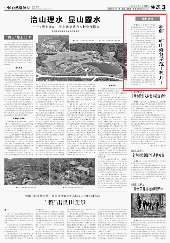 2025年5月,新疆东天山南麓资源能源富集区(哈密市)、西天山伊犁河谷生态区等两个历史遗留废弃矿山生态修复示范工程项目入选2025年国家历史遗留废弃矿山生态修复示范项目支持范围,总投资10.62亿元,其中中央资金支持6亿元,地方配套资金4.62亿元。