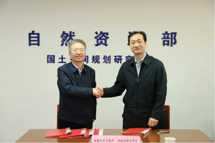 自然资源部国土空间规划研究中心党委书记、主任苗泽与新疆自然资源厅党组书记、副厅长孙继洲代表双方签约。