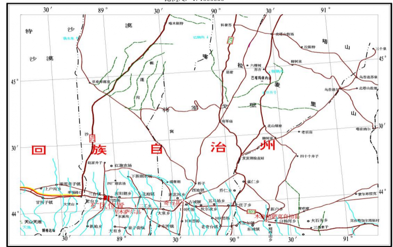 地理位置:位于新疆生产建设兵团第六师红旗农场南戈壁2号建筑用砂矿位于新疆生产建设兵团第六师红旗农场221°方向,直距约24千米处,属新疆生产建设兵团第六师红旗农场管辖。矿区中心地理坐标 (CGCS2000坐标系) 为 : 东经 88°54′06.42”, 北纬44°03′37.21”。自新疆生产建设兵团第六师红旗农场出发沿209县道向西南行驶32千米后到达矿区,道路路况较好,交通较为方便 。