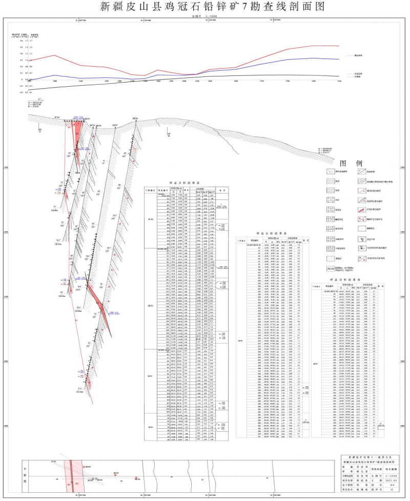 矿石量165.3万吨,铅金属量64055吨,锌金属量53635吨,铅平均品位3.87%,锌平均品位3.24%。伴生银金属量8943千克,平均品位5.40g/t,镉金属量347吨,平均品位0.021%。